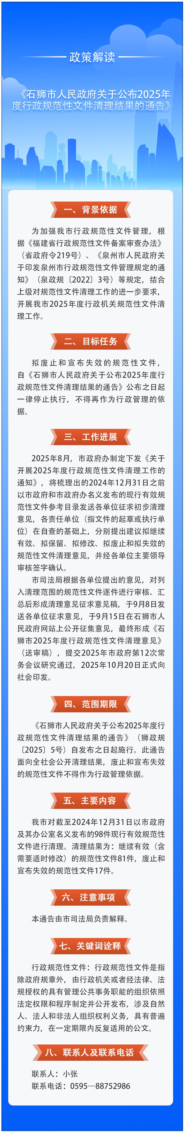 【圖文解讀】《石獅市人民政府關于公布2025年度行政規范性文件清理結果的通告》政策解讀