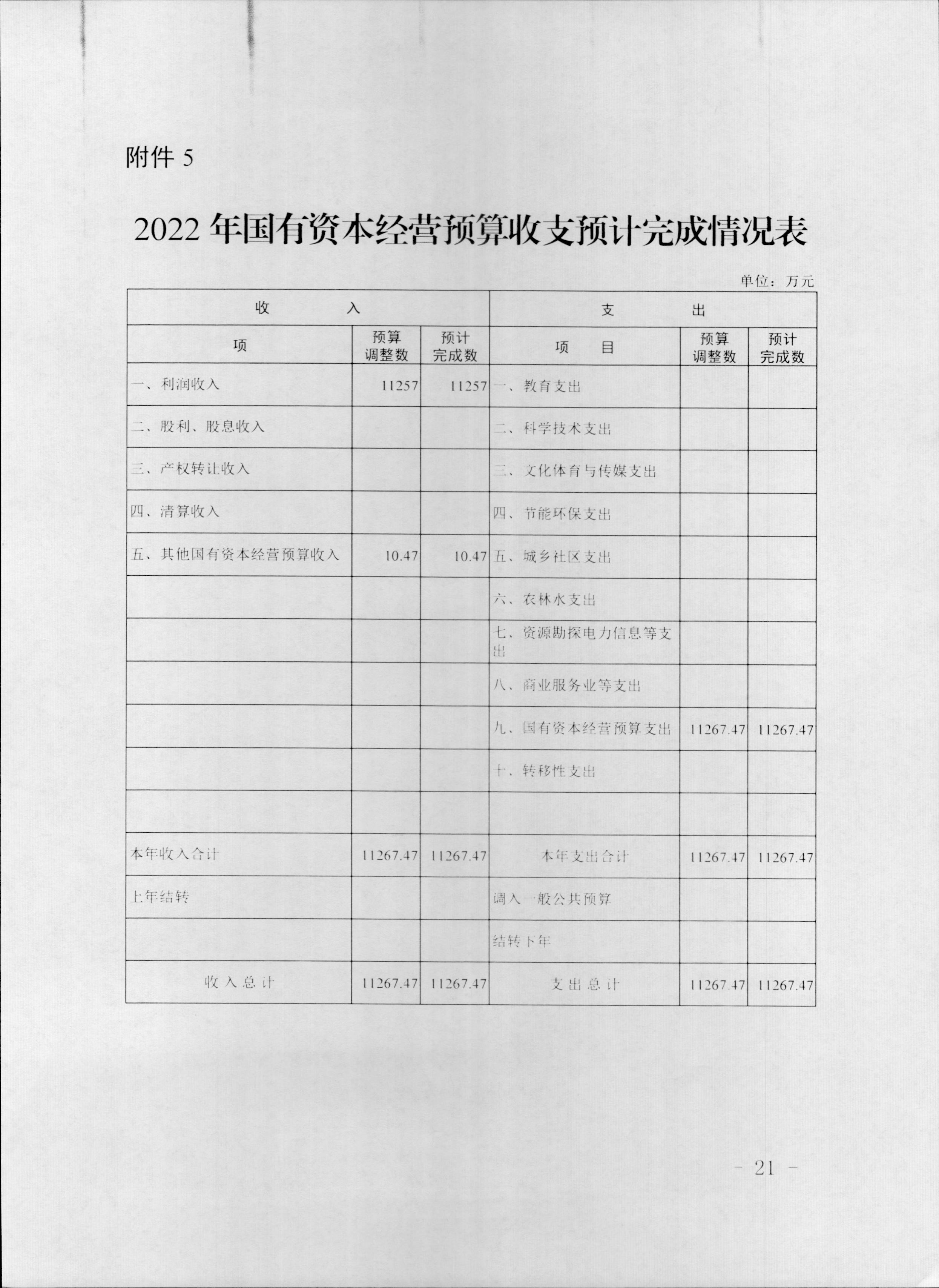 國有資本經營預算收入1.13億元,增收0.08億元、增長7.6%。國有資本經營預算支出1.13億元,收支平衡。