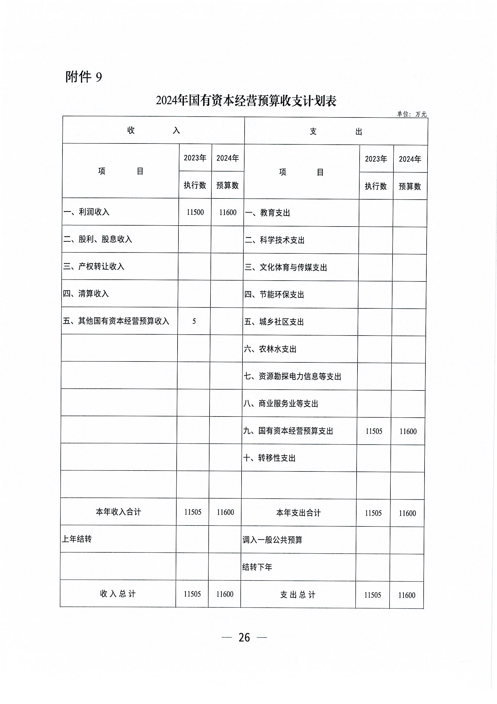 國有資本經營預算收入1.16億元,國有資本經營預算支出1.16億元,主要是安排資本金注入和運營補貼等支出1.16億元,實現收支平衡。