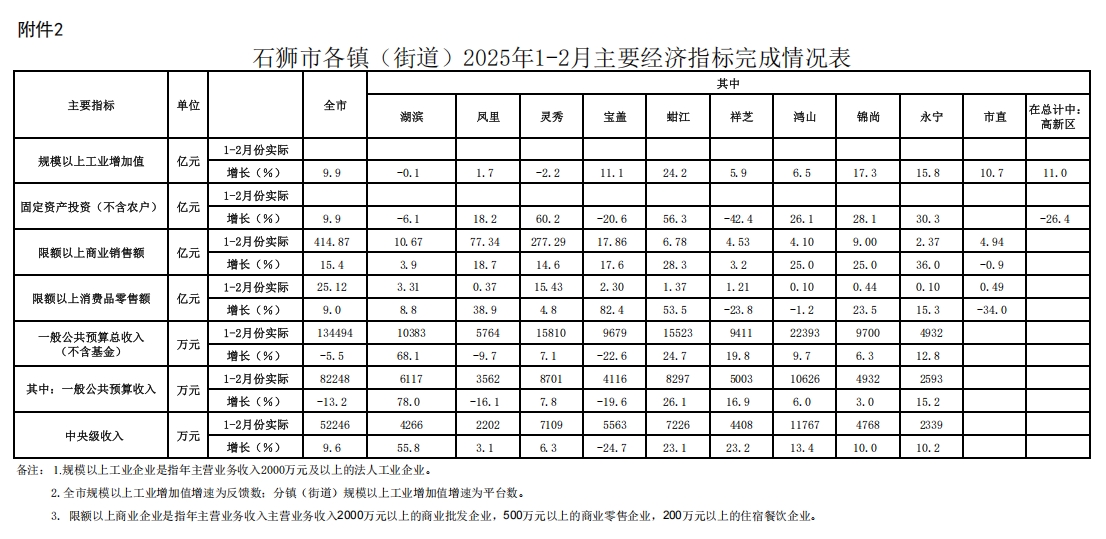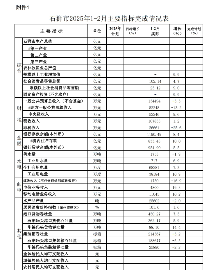 石獅市2025年1-2月主要指標完成情況及各鎮(街道)主要指標完成情況表