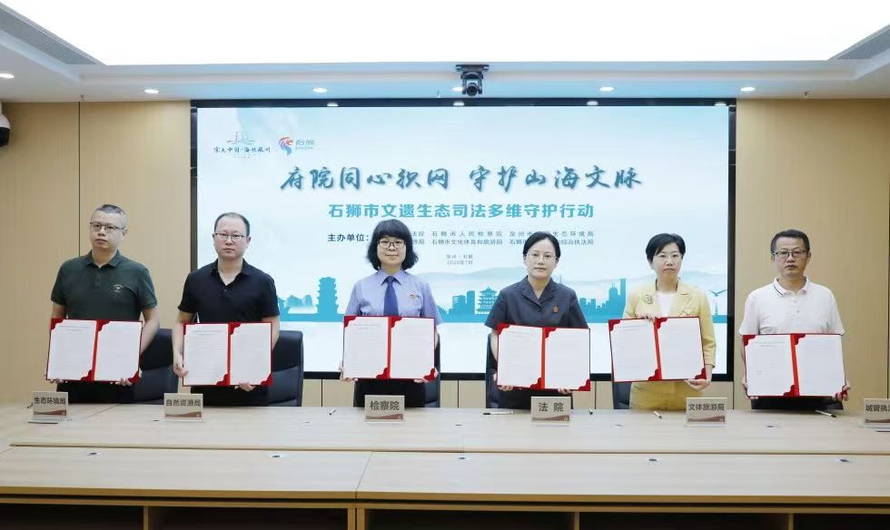 石獅法院聯合石獅檢察院、文體旅游局、泉州市石獅生態環境局、自然資源局、城管執法局等單位舉行“府院同心織網 守護山海文脈”石獅市文化遺產與生態司法協同守護工程共建儀式,并揭牌成立“石獅市文化遺產與生態司法保護工作站”。